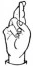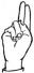 На ћирилици написано ЈЕЛИСАВА ХАРАЧИ састоји се из 14 слова [?]. Исписано ћириличном једноручном азбуком за глувонеме: